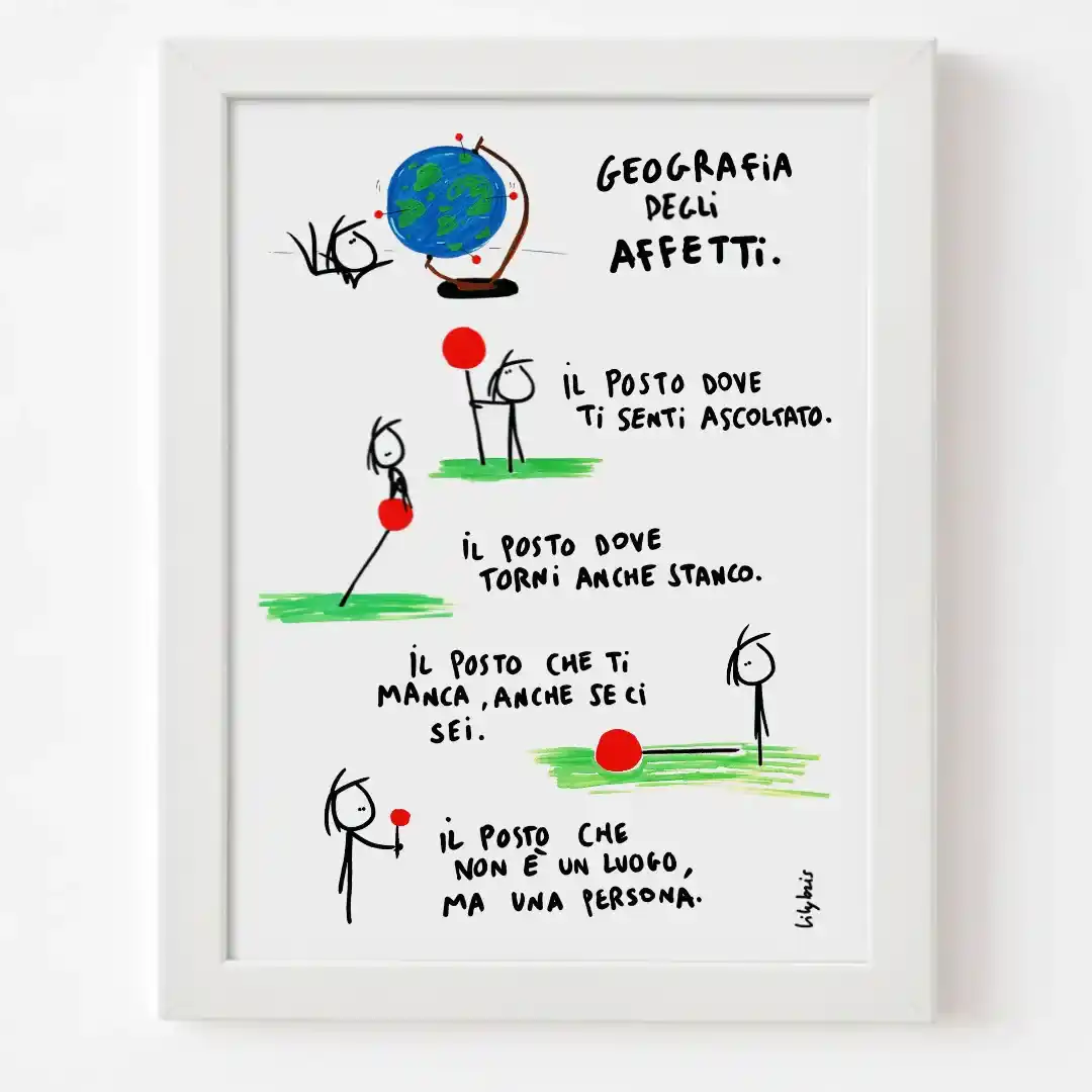 Un’illustrazione originale Lilybris che unisce poesia e leggerezza per raccontare il mondo delle emozioni, capace di portare riflessione e bellezza in ogni ambiente.
