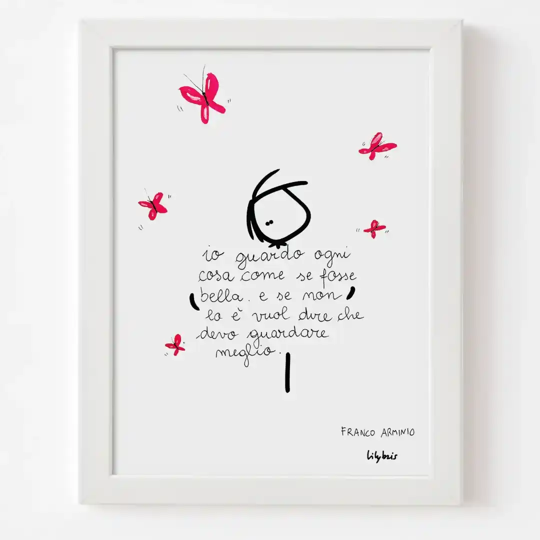 Ogni stampa è una riproduzione grafica originale, realizzata su carta Fedrigoni Tintoretto Neve 300 g con stampa ad alta definizione, per custodire la texture della carta e la delicatezza del tratto.
