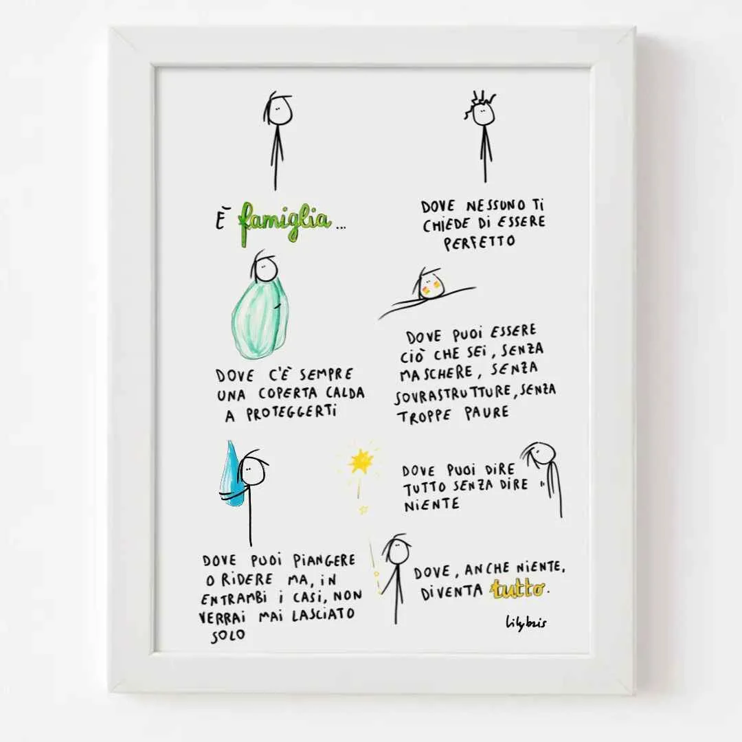 Un’illustrazione originale Lilybris che unisce poesia e leggerezza per raccontare il mondo delle emozioni, capace di portare riflessione e bellezza in ogni ambiente.
